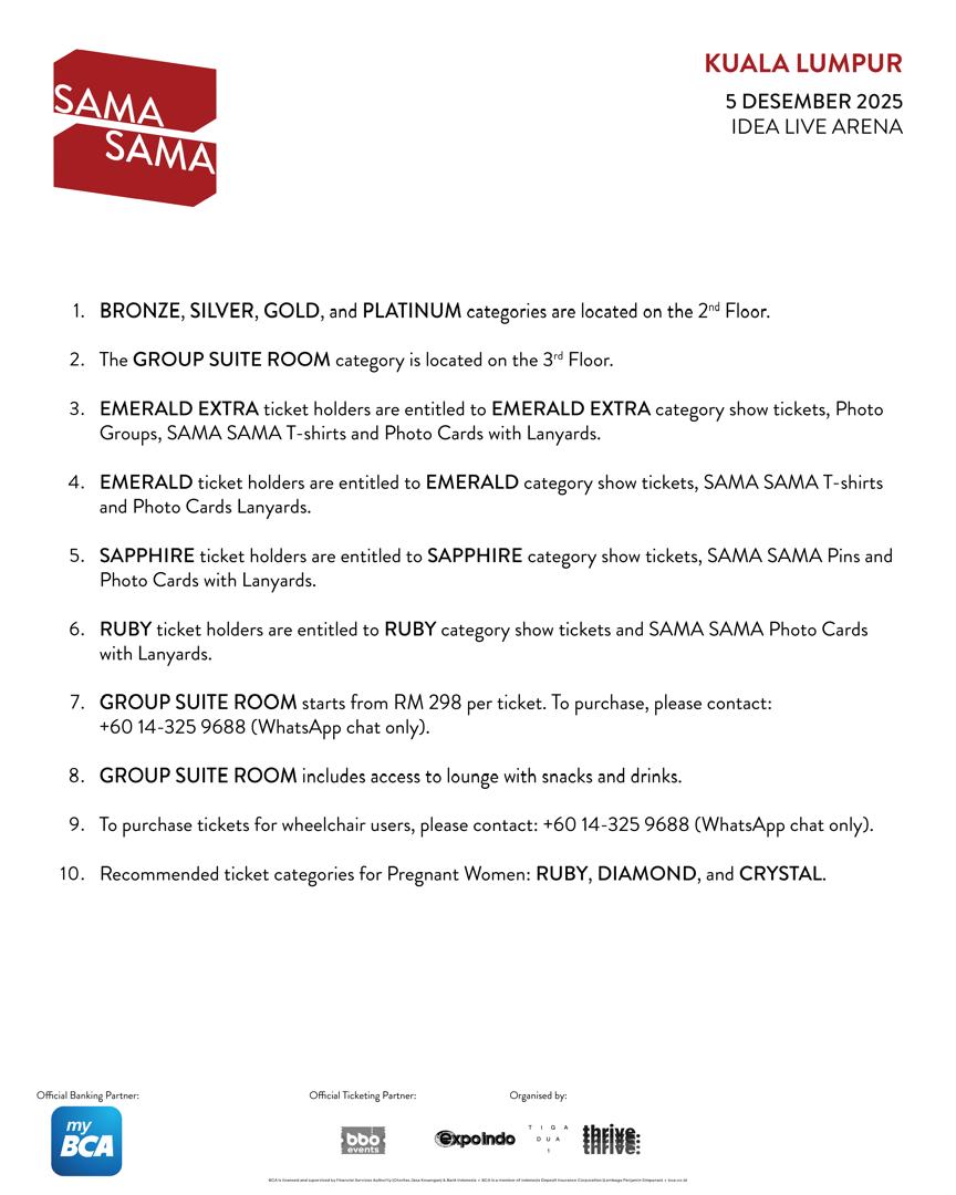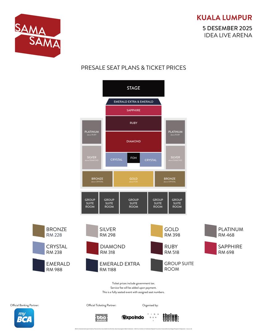 Juga, sekali lagi silakan periksa harga tiket mulai dari RM 228 yang sudah dijual di aplikasi BBO Events dan samasamatur.com. Tiket pre-sale akan berlanjut mulai 19 Oktober hingga 2 November 2025. Dapatkan sekarang!